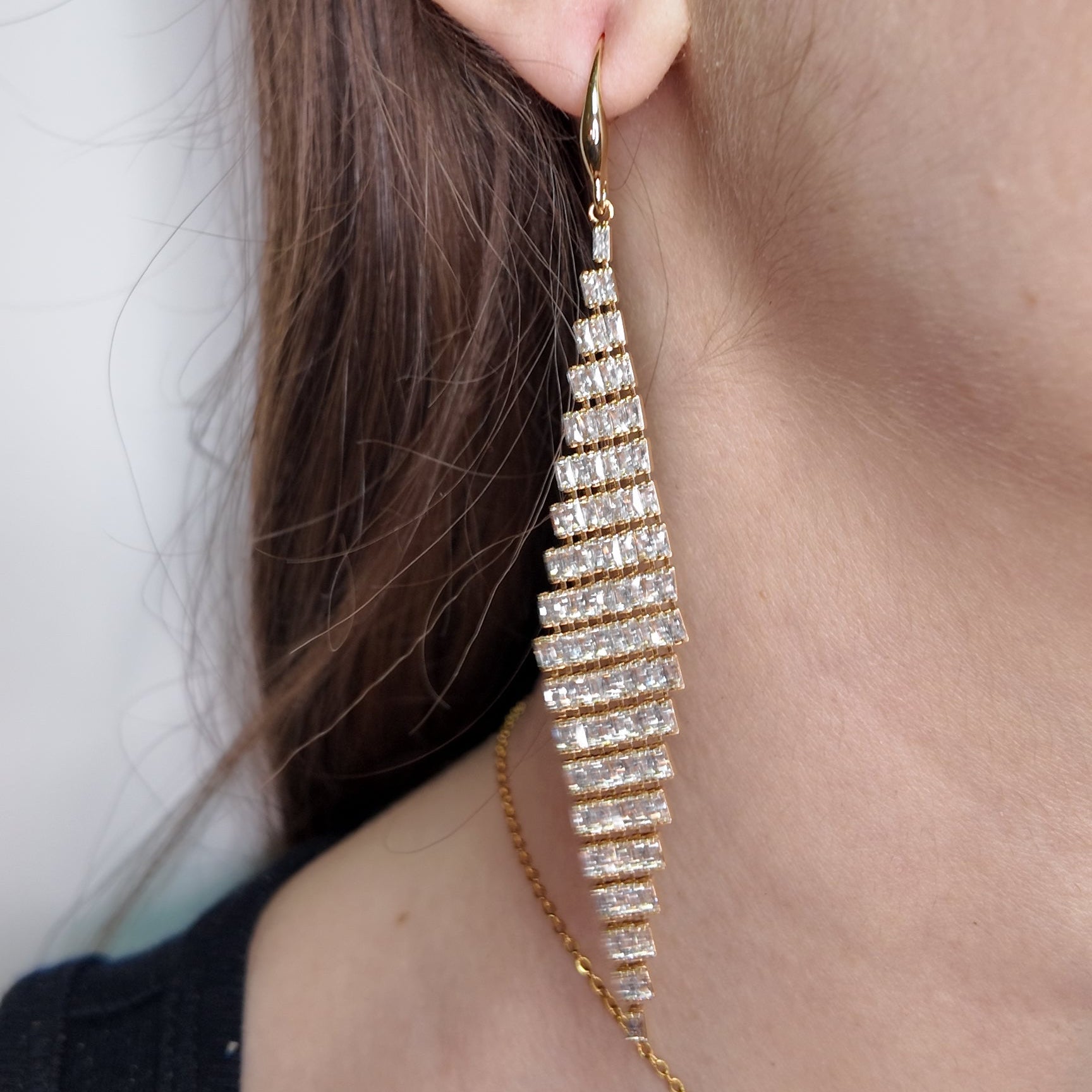 - Design: Long Drop Earrings in a Rhombus/Feather Shape
